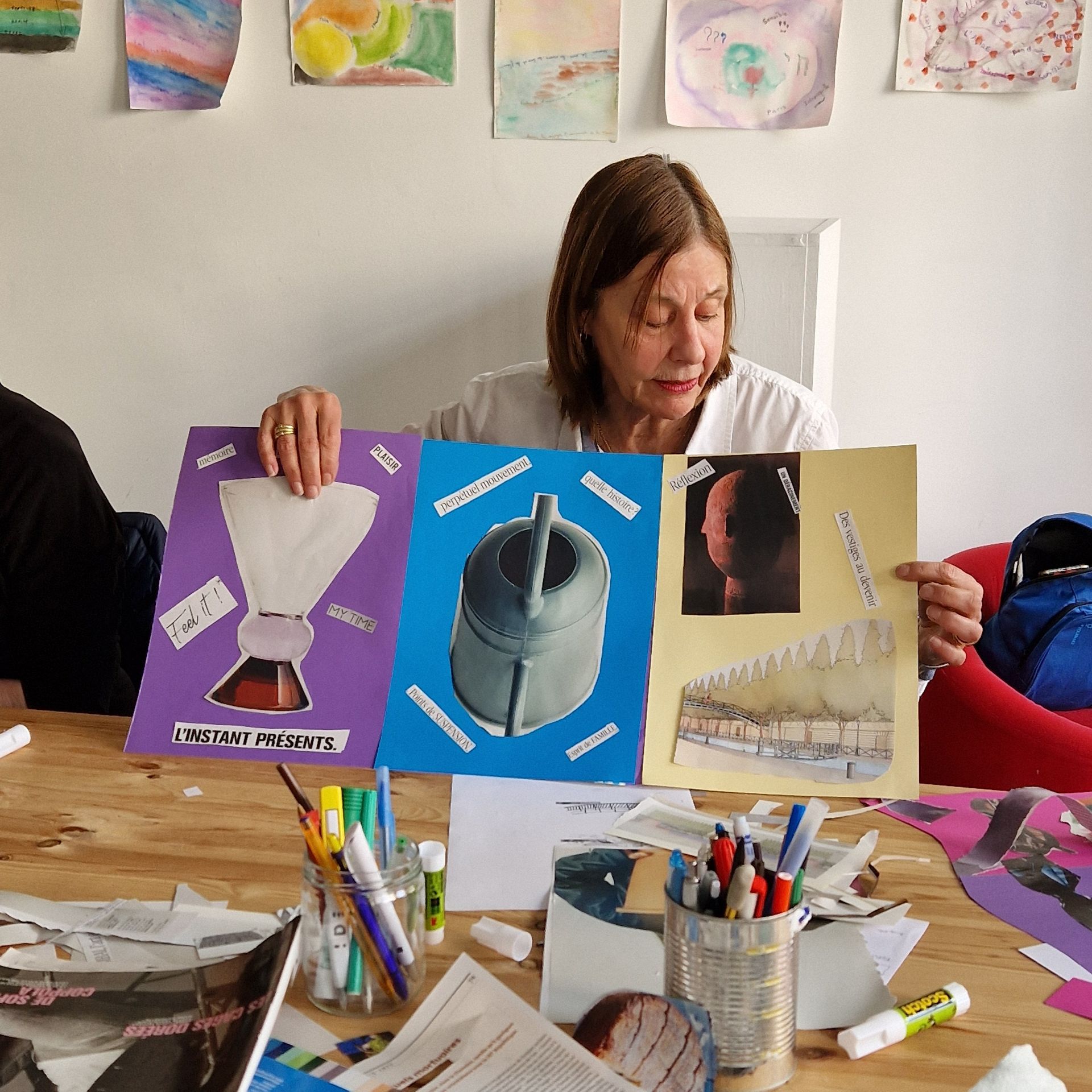 L’activité de Slow Looking dirigée par Mary-Jane et Nita explore la connaissance de soi et la perception d’autrui. Elle est en lien avec notre exposition photographique "WHO’S NEXT" de l’artiste Charlotte Haslund-Christensen qui orne nos murs. Elle a commencé avec une petite introduction méditative, afin de nous apaiser en contrôlant notre respiration et pour être conscient de notre corps.